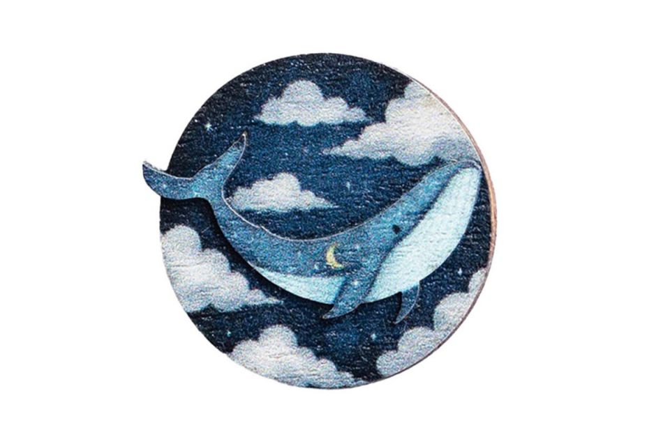 Drewniana broszka – Wieloryb