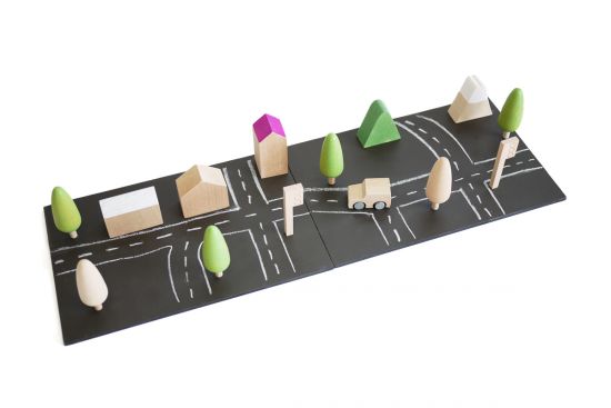 Zabawka Machi-Tiny Town zawiera dwie magnetyczne tablice, które stanowią podstawę miasta. Dzieci mogą na nich tworzyć własne miasta według własnych pomysłów. Eliška zadbała o to, aby tablice były ekologiczne, dzięki czemu dzieci mogą używać dołączonej specjalnej ekologicznej kredy do rysowania i ścierania swoich pomysłów bez pozostawiania śladów. Ale to nie wszystko!