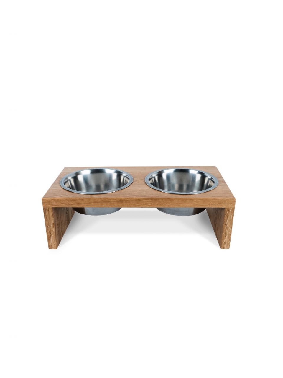 Drewniany stojak na dwie miski Linea mini - Dąb