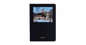 Notatnik w linie posiada praktyczny uchwyt na długopis.